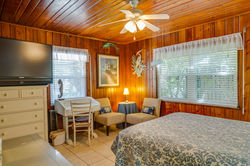 Bedroom has reading area – desk & chair plus 2 upholstered chairs and table. Full Kitchen, fully equipped, central heat and AC, ceiling fans, ceramic tiled floors, bathroom has storage, vanity and shower stall. Fully furnished, Towels/linens supplied. 2 tandem parking spots about 12 feet from front door. About 40 steps to the beach and shared pool.